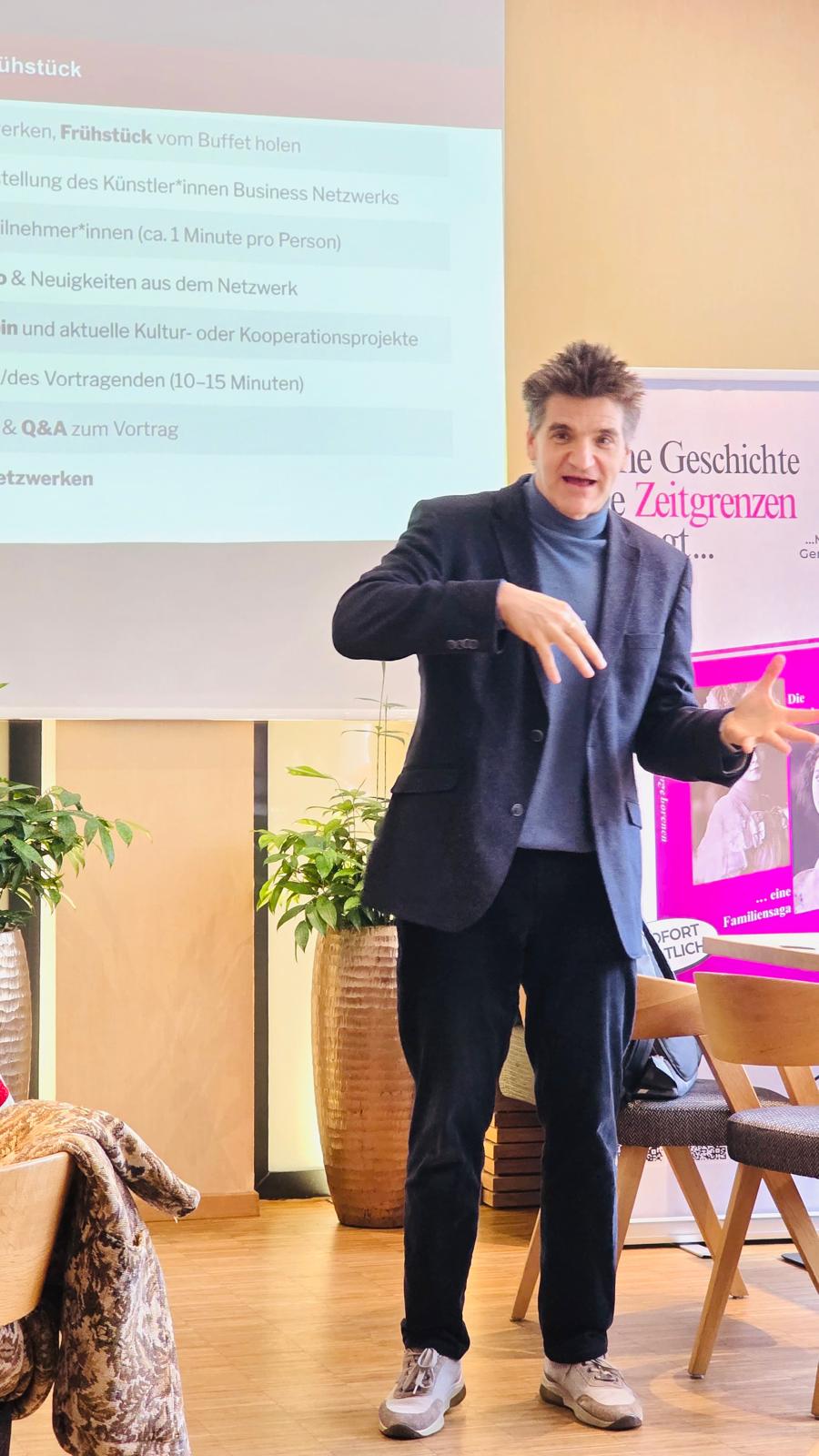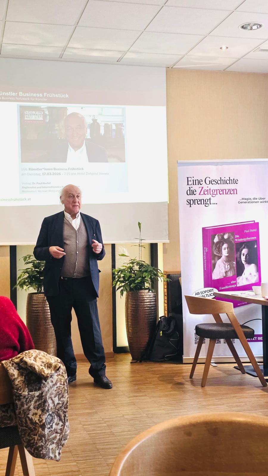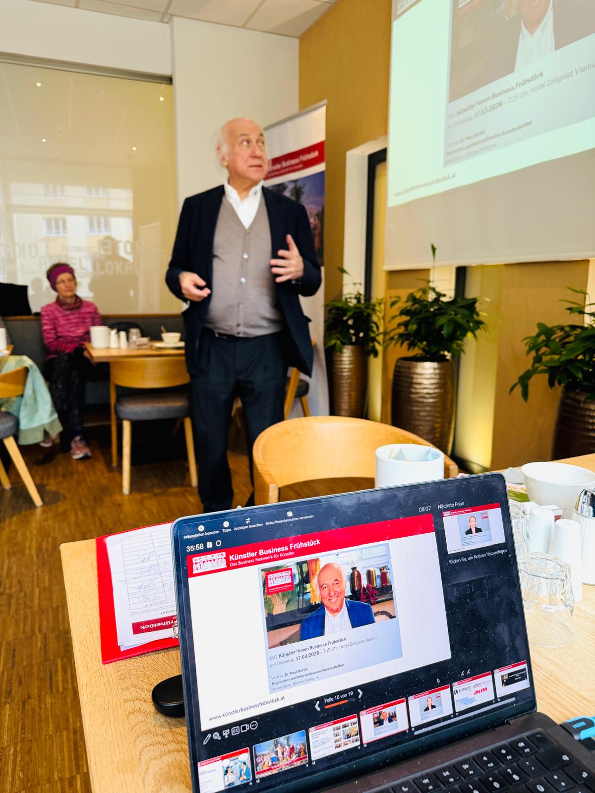 Am 17. März 2026 (… business as usual) fanden sich zu frühester Stunde 16 Teilnehmer*innen zum 166. Künstler*innen Business Frühstück im schönen Hotel Zeitgeist Vienna ein. Wir freuten uns über ein neues Gesicht, das über „Der erfolgreiche Musiker“ von Emi Treu zu uns gefunden hat, sowie über Gäste aus Wien und Niederösterreich.
